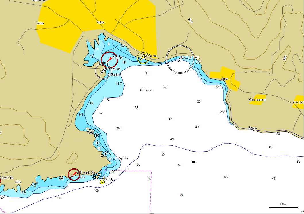 Pilot boarding position: Lat: 39° 11,5’ N / Long: 022 ° 51 ‘ N – the area approach to the port is covered on the map 312/2 of the Ministry of Mercantile Marine.